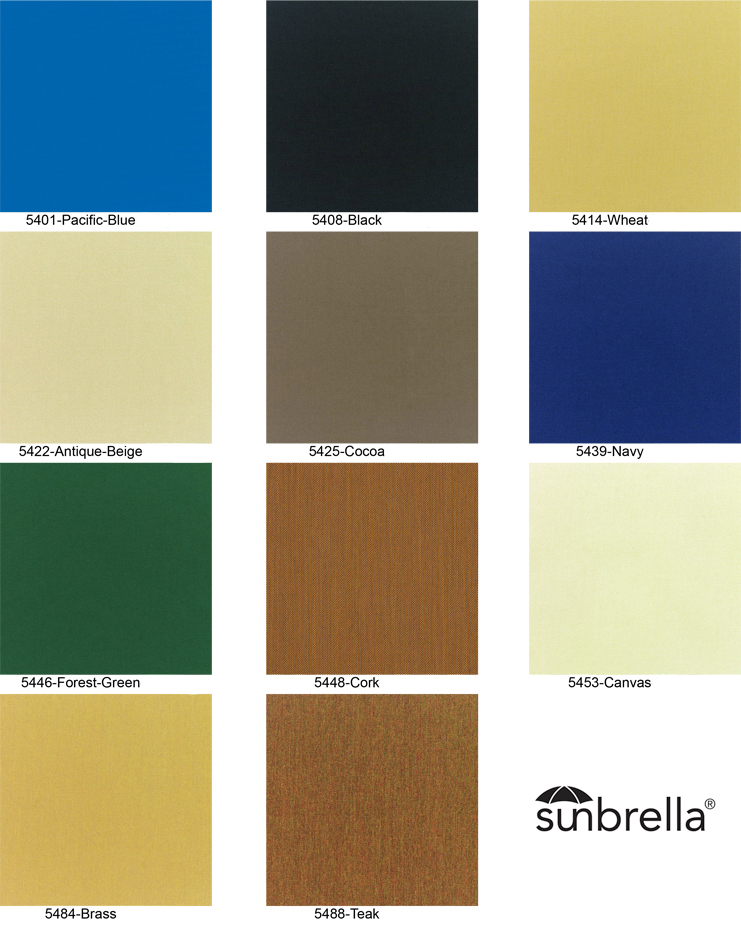 A selection of color and patterns can be found at the Sunbrella Fabric Showroom located by clicking on the Sunbrella logo at the bottom of this listing. Head over to the Furniture Outdoor Fabric Section and be sure to write down your desired Sunbrella Fabric Color and the Sunbrella Fabric Number and make that choice under Item 3 in the selection area of this listing.