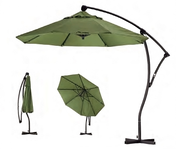 The California Umbrella cantilever patio umbrella is an exciting cantilever umbrella that opens up tremendous possibilities for any space. The spacious nine foot umbrella canopy tilts and turns 360 degrees to offer the most remarkable shade potential. With a strong two inch diameter heavy-duty anodized aluminum pole, a stainless steel cable crank system and a standard base with pre-drilled ground anchor holes this rugged design is purposely built to stand up to the rigors of use.