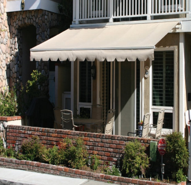 The Brass Series Retractable Patio Awnings are a "Ready-Made" product that is the ideal solution for those with a need for a quality exterior shading system that is nonetheless economical. These retractable awnings are offered in limited pre-manufactured frame sizes as well as in five standard fabric colors. This type of standardization in both sizing and colors lowers production costs without diminishing quality as these savings are then passed on to you along with providing a much higher quality product at a considerable savings. We have seen a number of other retractable awnings coming into the market from overseas at reduced costs most without any form of pitch adjustments, some utilizing plastic arms, others a light-weight aluminum frame with thin aluminum arms none of which can compare to these solidly built awnings.
